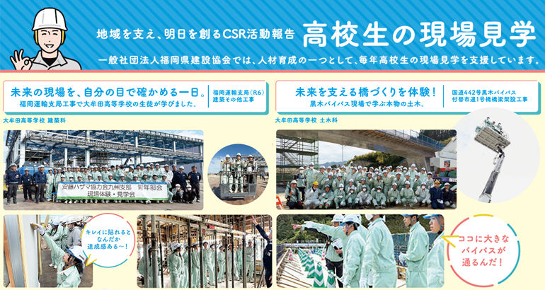 福岡県建設業協会では、人材育成の一つとして、毎年高校生の現場見学を支援しています。 (PDFで誌面を読む