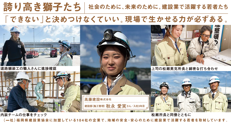 福岡県建設業協会に加盟している企業で活躍する若者を取材しています。 (PDFで誌面を読む